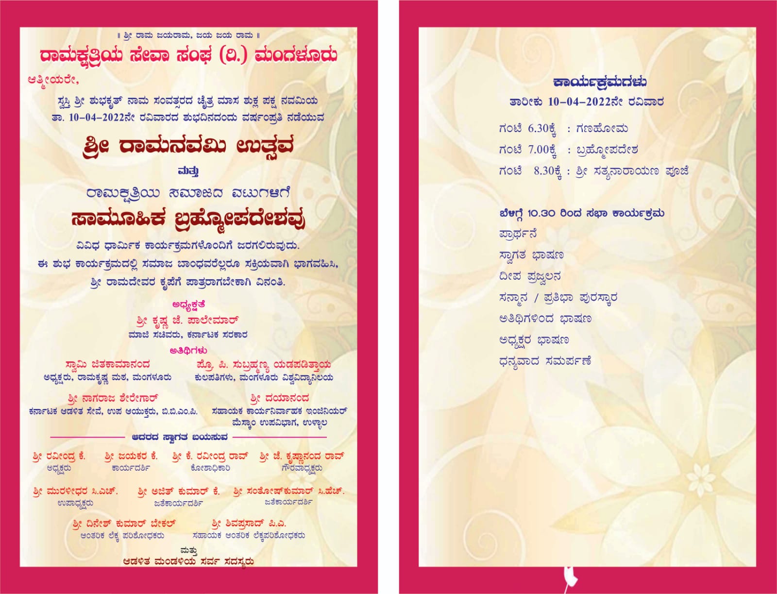 Rama Kshathriya Seva Sangha (RKSS), Mangalore, is a premier forum for people belongs to Ramakshatriya community in and around Mangalore. The sangha is founded with a vision ....